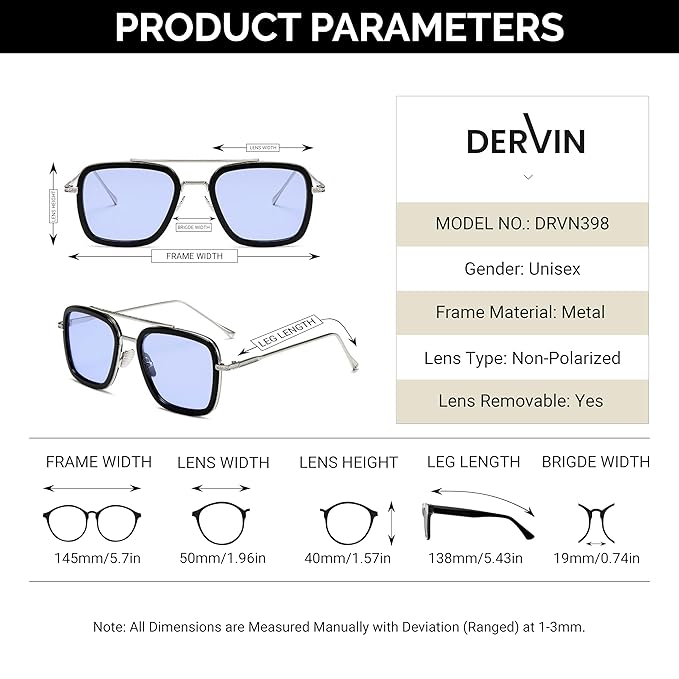 - Stylish Design: Dervin unisex square sunglasses feature a sleek and trendy design, perfect for both men and women.