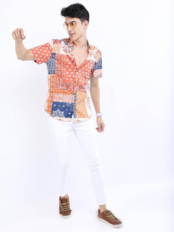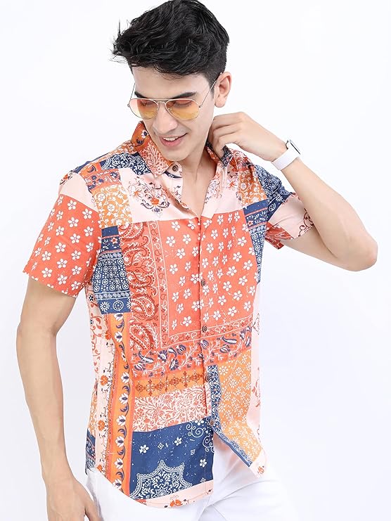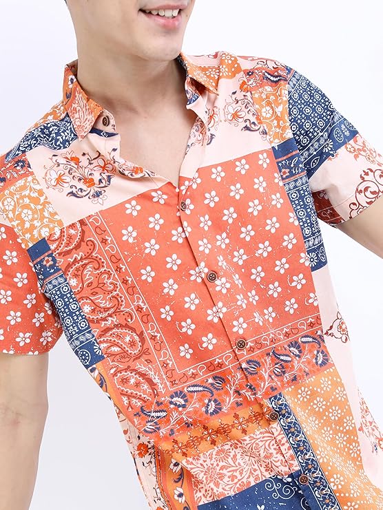 Highlander Men’s’s Floral Print Shirt | Half Sleeves | Bold & Elegant Design a Fresh & Stylish Look