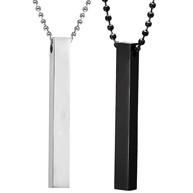 • Type: Black and Silver 3D Cuboid Vertical Bar/Stick Locket Pendant Necklace Combo
