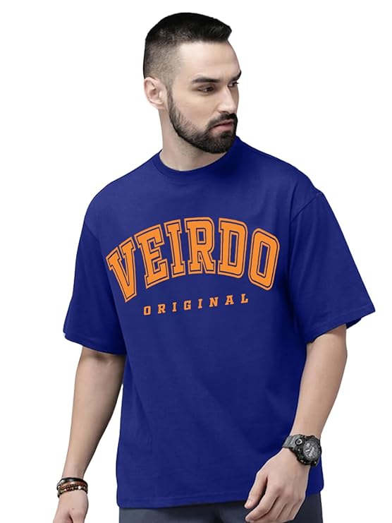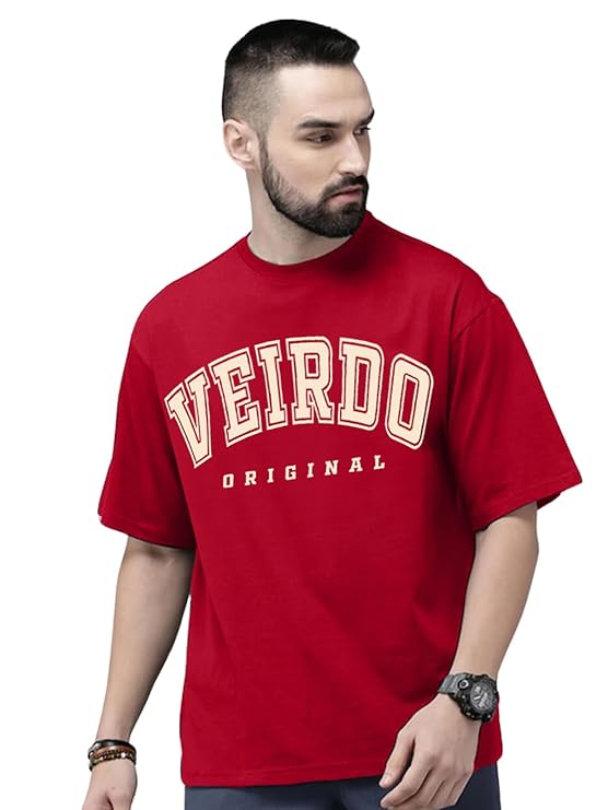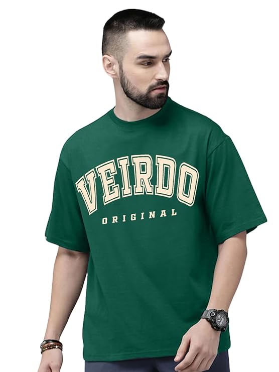 Veirdo® Pure Cotton Green, Royal Blue, Red, Navy Blue & Swan White Oversized Fit Originals Typographic Printed Half Sleeve T-Shirt for Men & Boys
